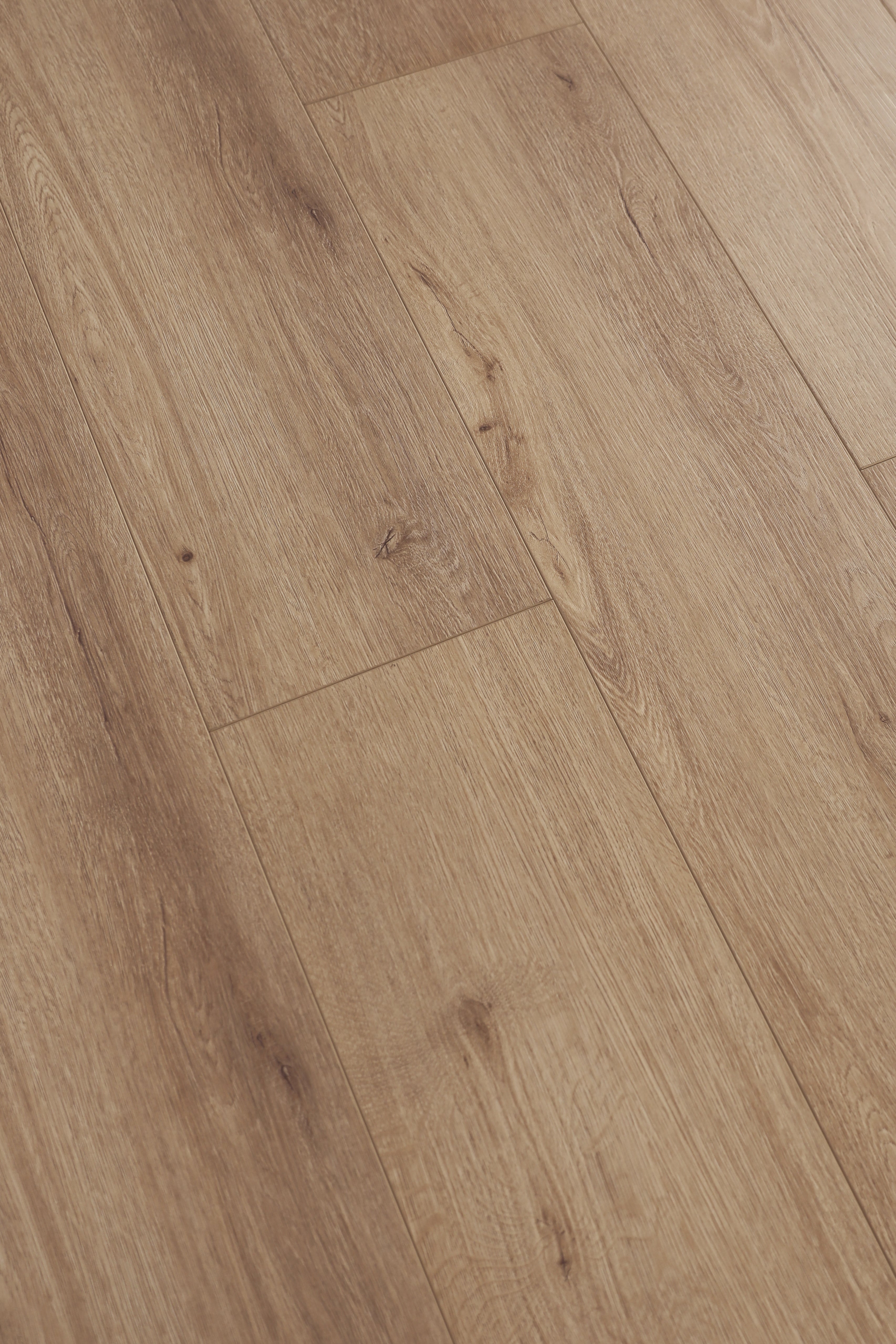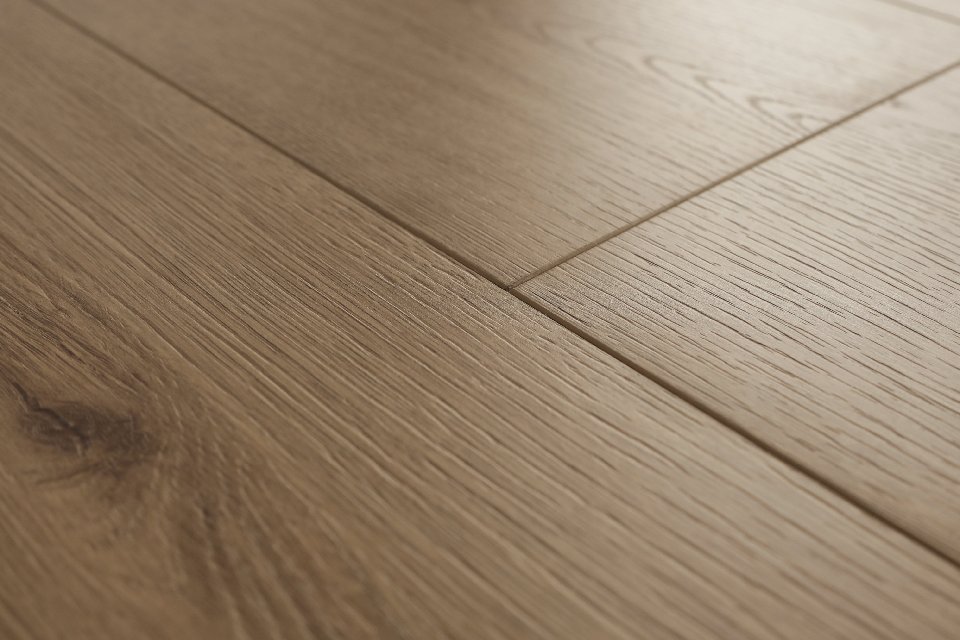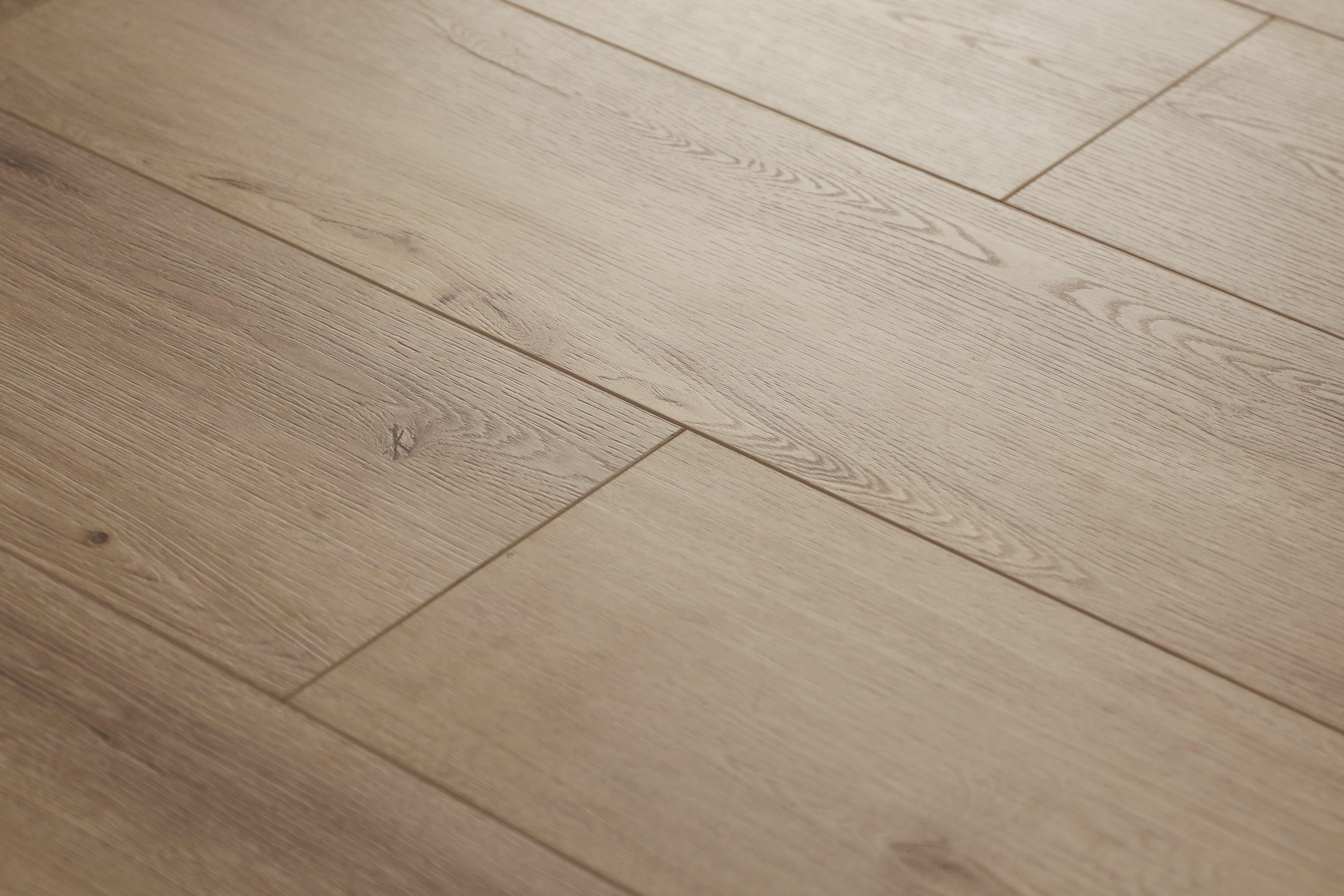 Niobe is a light warm brown wood-look laminate from the Evolved collection with an embossed-in-register texture and a matte Ceramic UV finish, designed for high-traffic, water-resistant performance.